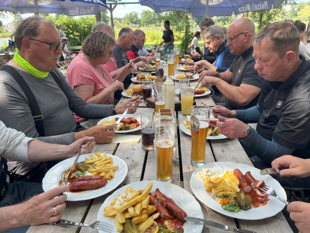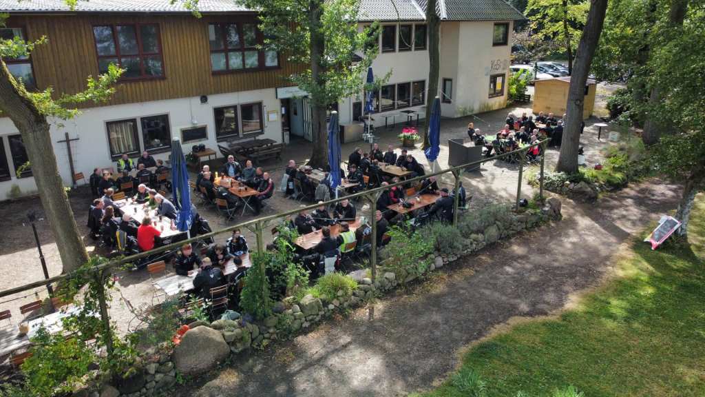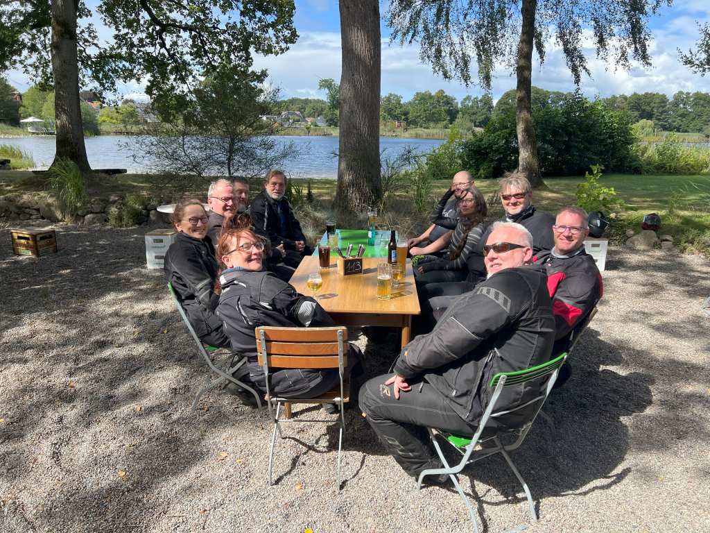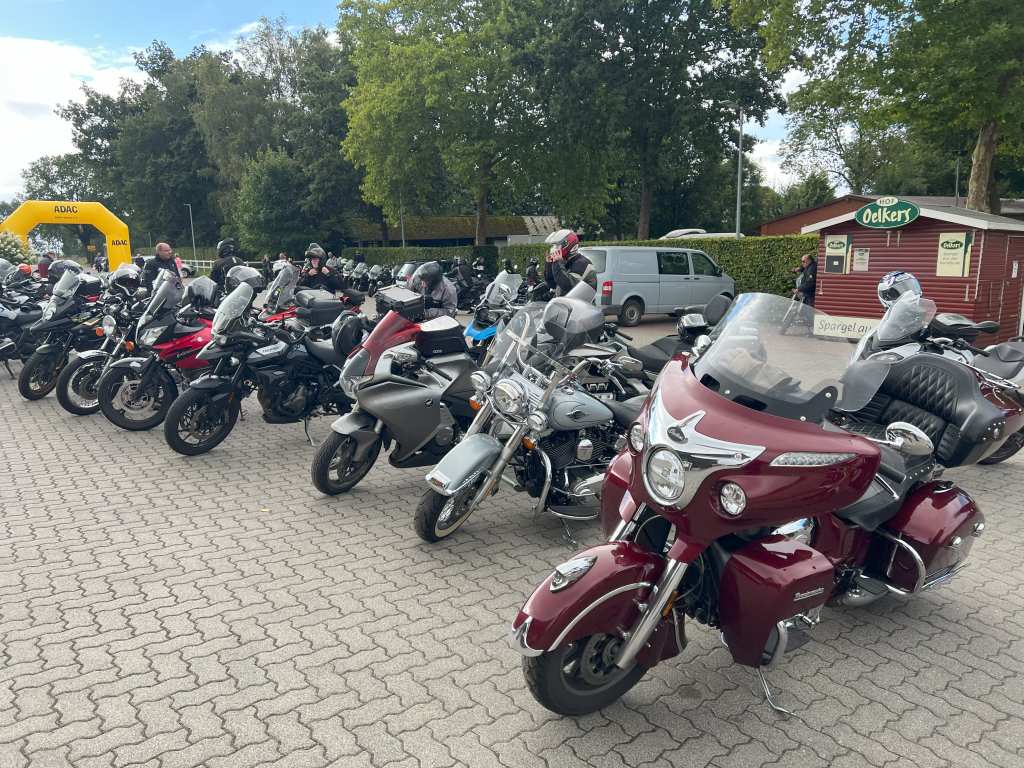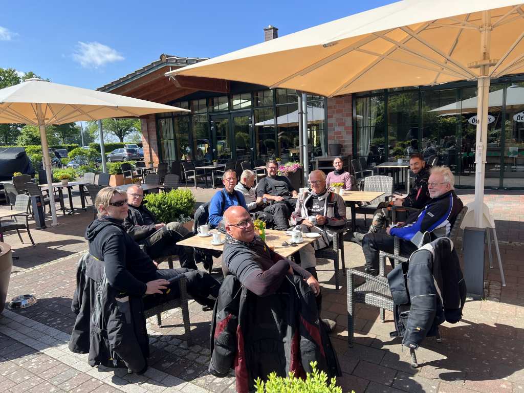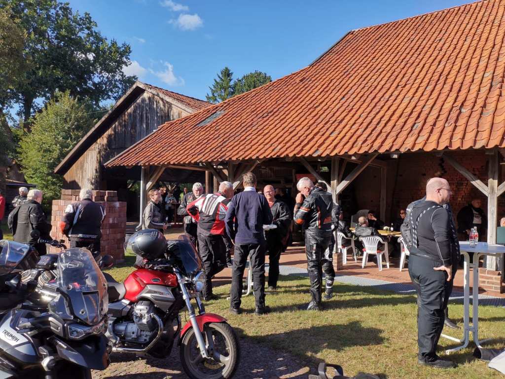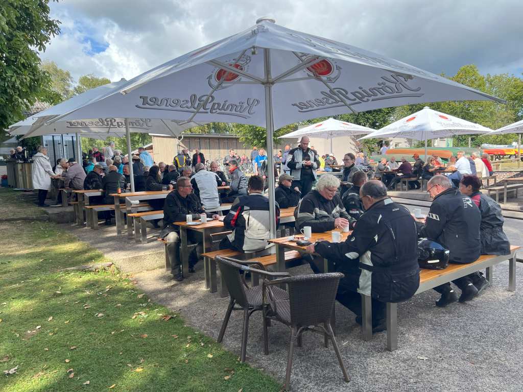 Aufgrund des heftigen Regens am vormittag in Otterstedt, hatte der Gastwirt Daniel alles für “Indoor” vorbereitet, aber noch kurz vor dem Eintreffen der Motorrad-Meute bei Sonnenschein extra für uns alles in den Außenbereich verlegt. Alle Gruppen hatten ihren Tischbereich und auch fix etwas gegen den Durst.